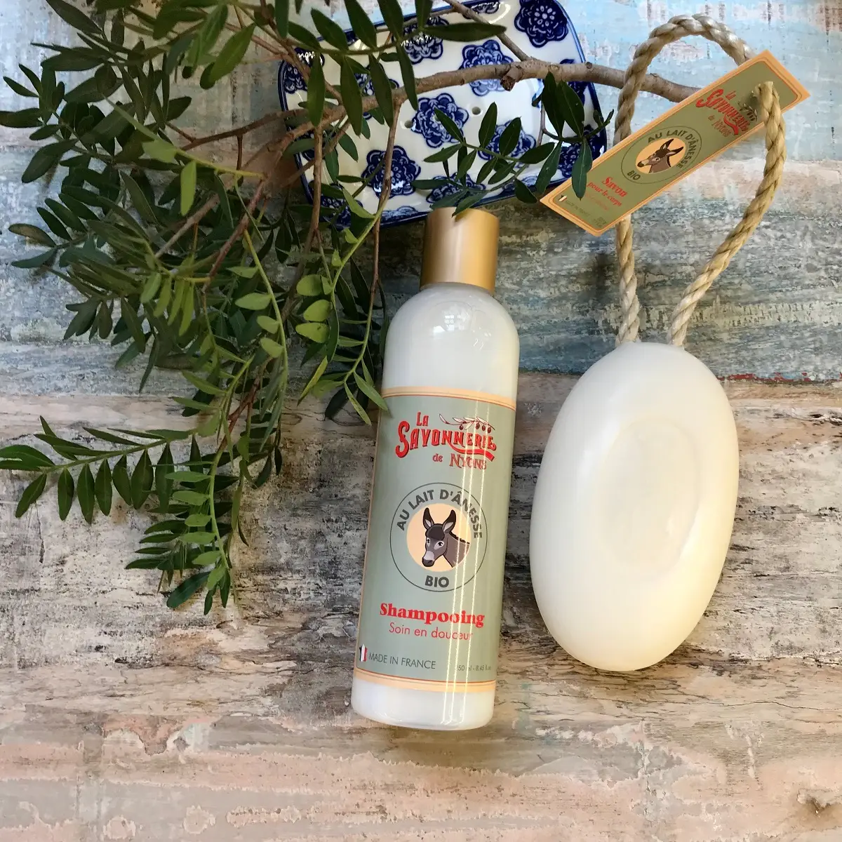 Základní složkou tohoto šamponu je oslím mléko v bio kvalitě, které je od pradávna považováno za elixír krásy. Obsahuje širokou škálu vitaminů (A, B1, B2, B6, C, D a E), minerálů a stopových prvků. Tyto látky intenzivně vyživují vlasová vlákna, dodávají jim pružnost a podporují jejich zdravý růst. Aminokyseliny a fosfolipidy přirozeně chrání vlasy před poškozením, posilují jejich strukturu a obnovují vitalitu.
