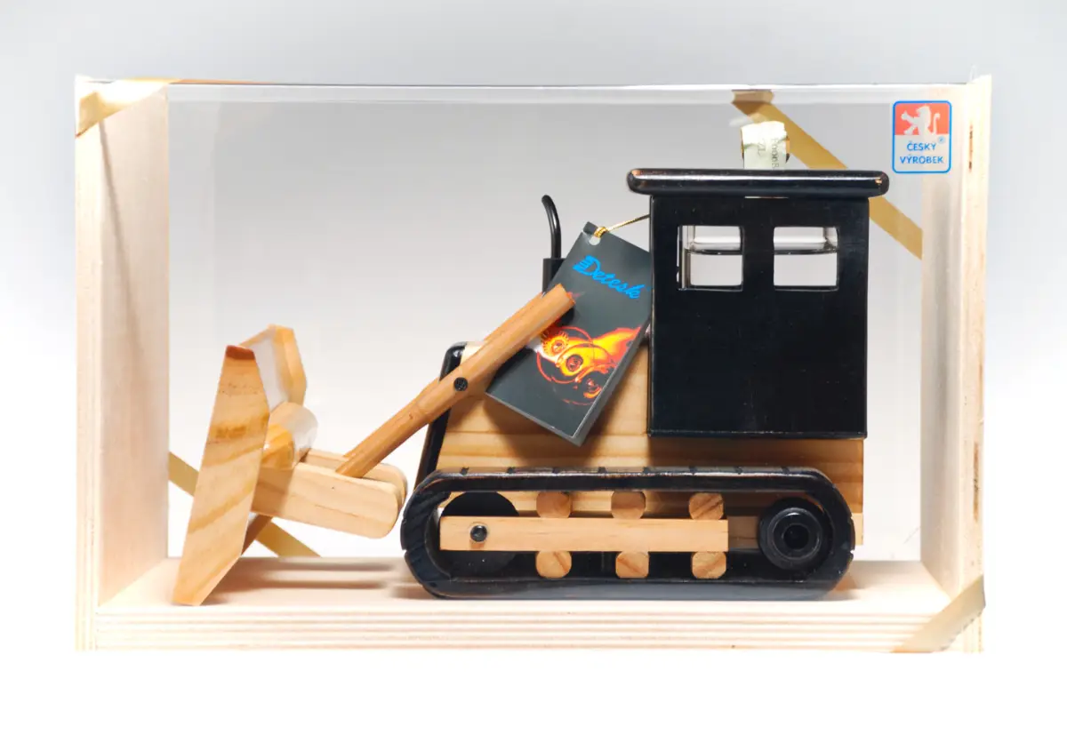 Dřevěné provedení působí pevně a stabilně. Model bagru zaujme nejen milovníky techniky, ale i každého, kdo ocení originální dárek. V interiéru funguje jako dekorace, která přitahuje pozornost a otevírá konverzaci.