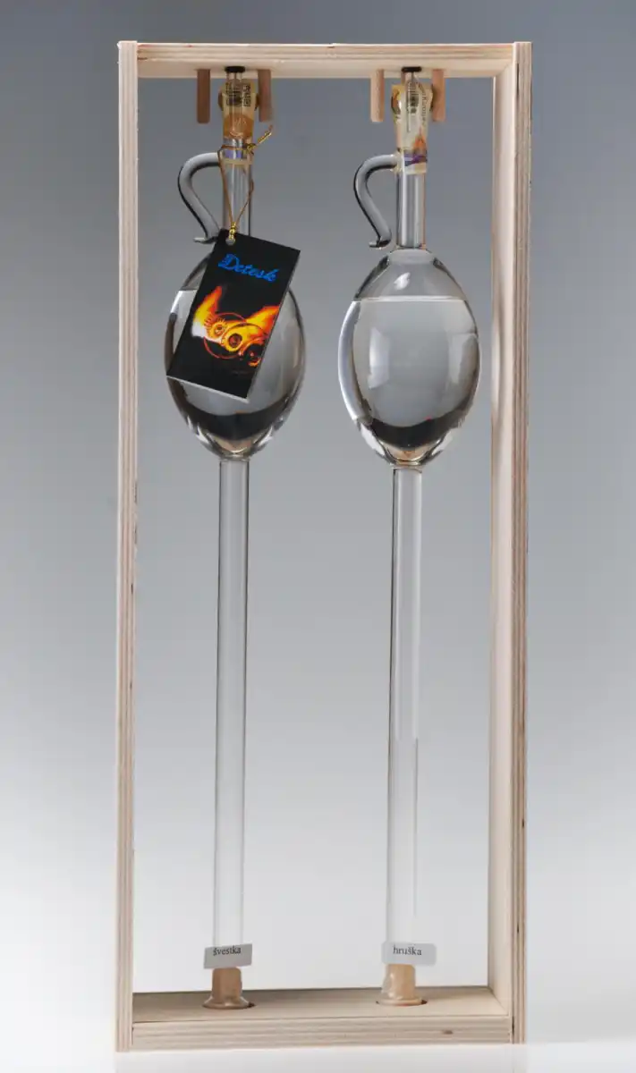 - jeden koštýř je naplněn slivovicí, druhý je naplněn hruškovicí