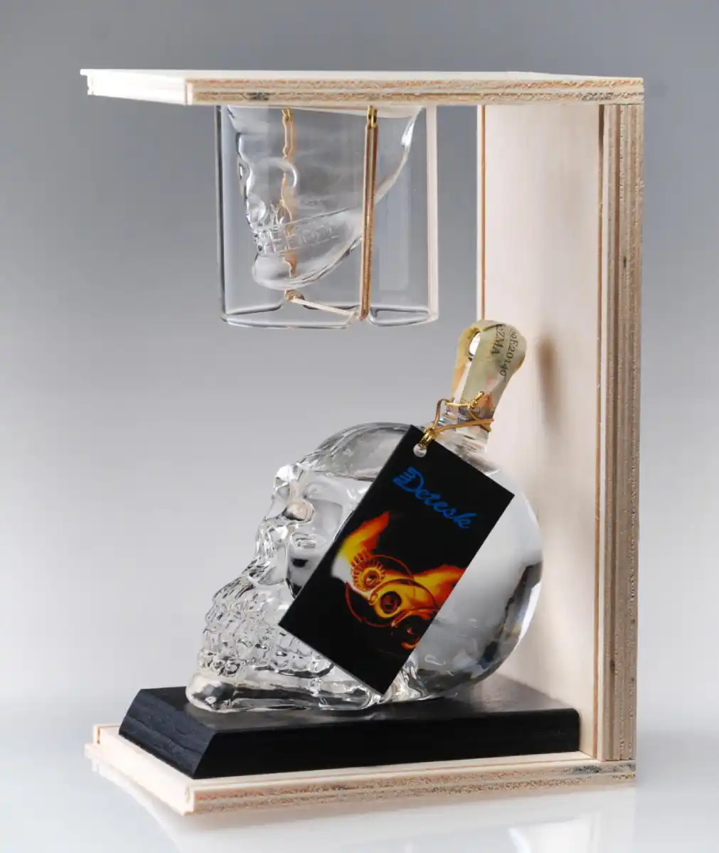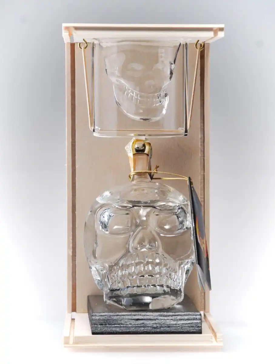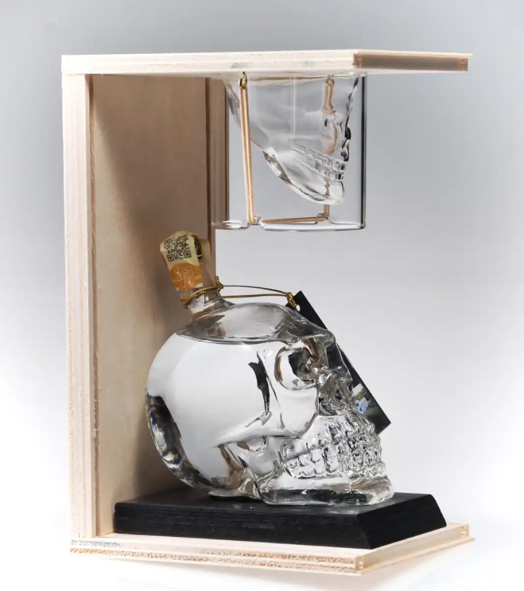 Dárková vodka Lebka zaujme na první pohled originální lahví ve tvaru lebky a stylovým balením v dřevěné krabici se skleničkou. Ideální volba pro výjimečný dárek s výrazným charakterem.