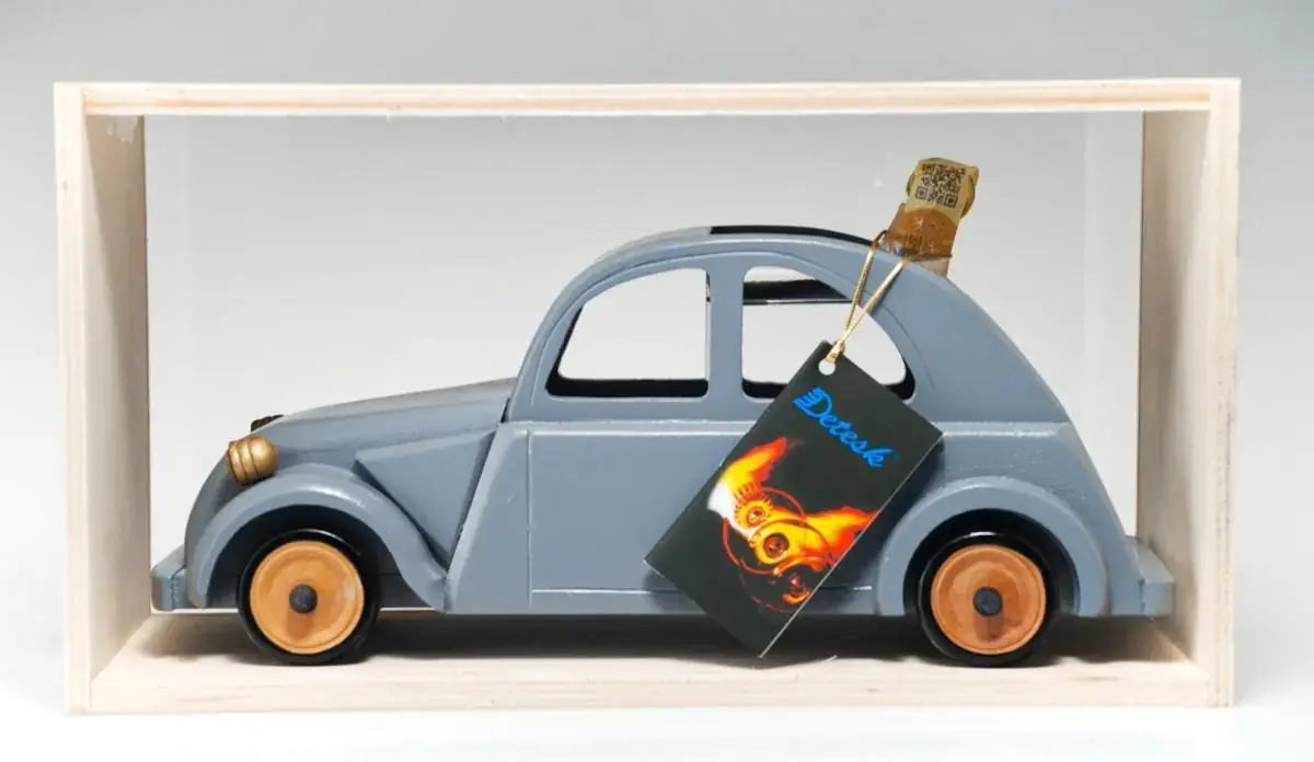 Dárková slivovice v podobě dřevěného modelu auta Citroën přináší originální způsob, jak darovat tradiční destilát. Stylizovaný model vozu ukrývá uvnitř lahvičku slivovice a vytváří tak jedinečný dárkový set s výrazným vizuálním efektem.