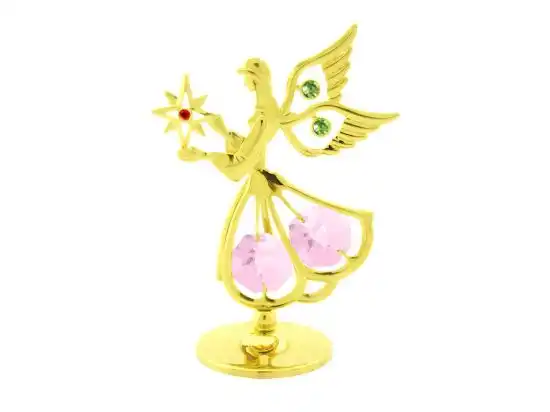 Anděl s hvězdou – zlatá dekorační soška s křišťály