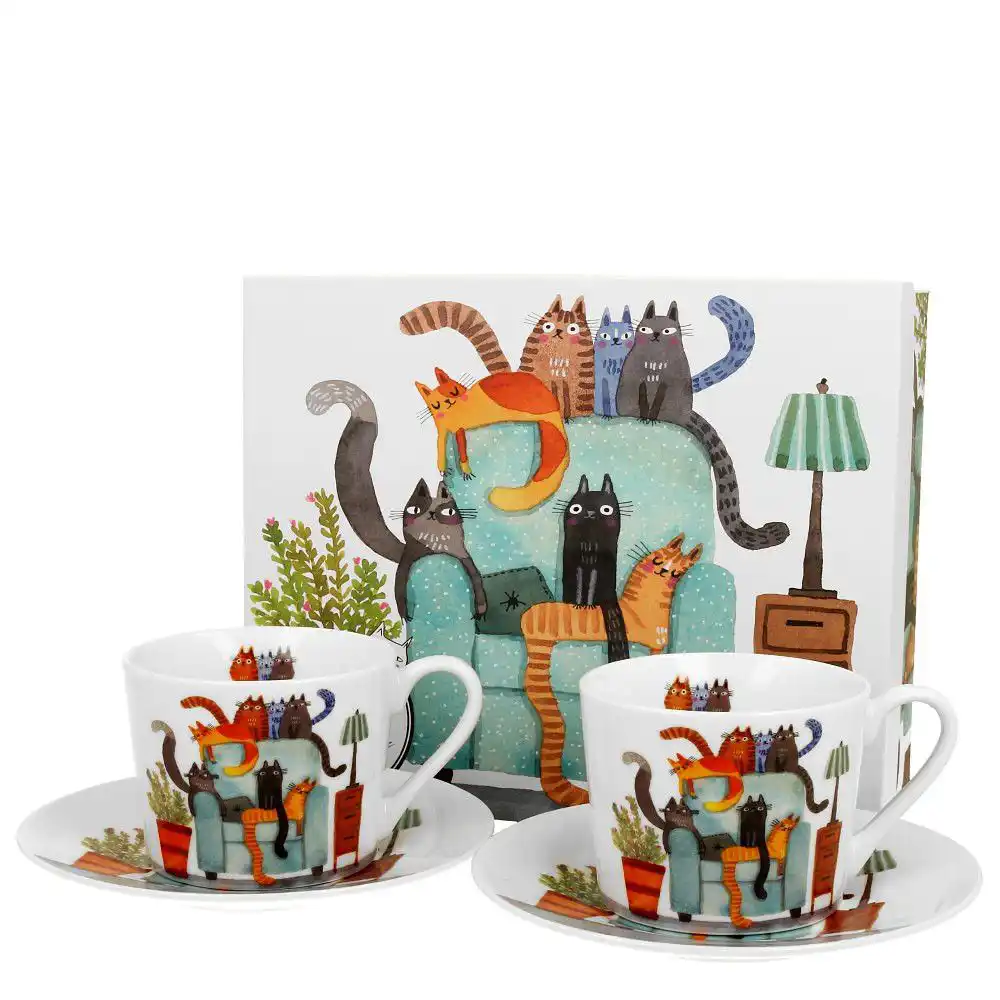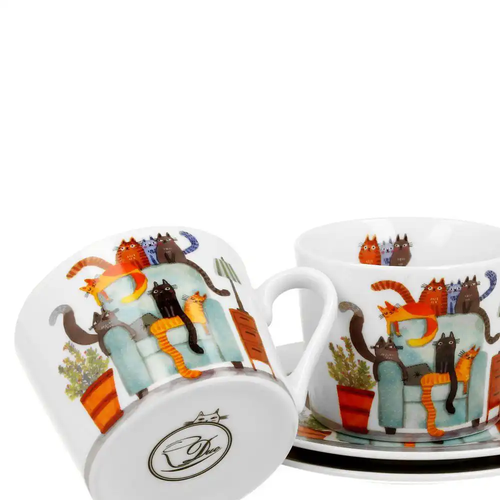 2× Šálek s podšálkem Kočky, každý o objemu 200 ml