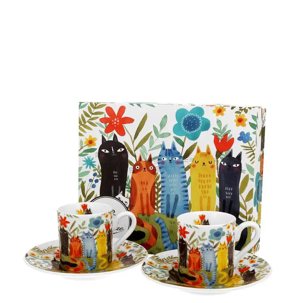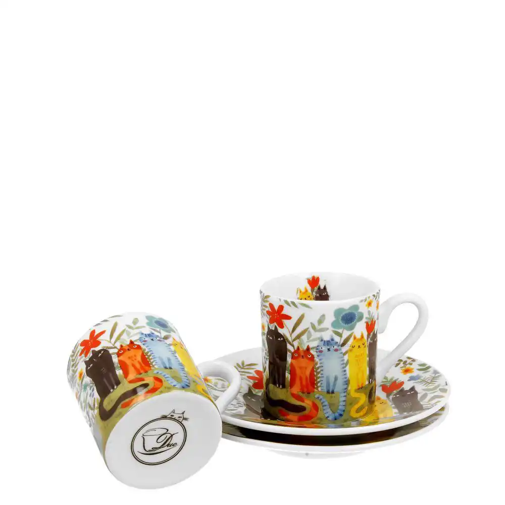 Duo Gifts Šálek s podšálkem espresso 90 ml Kočky na zahradě – sada 2 ks