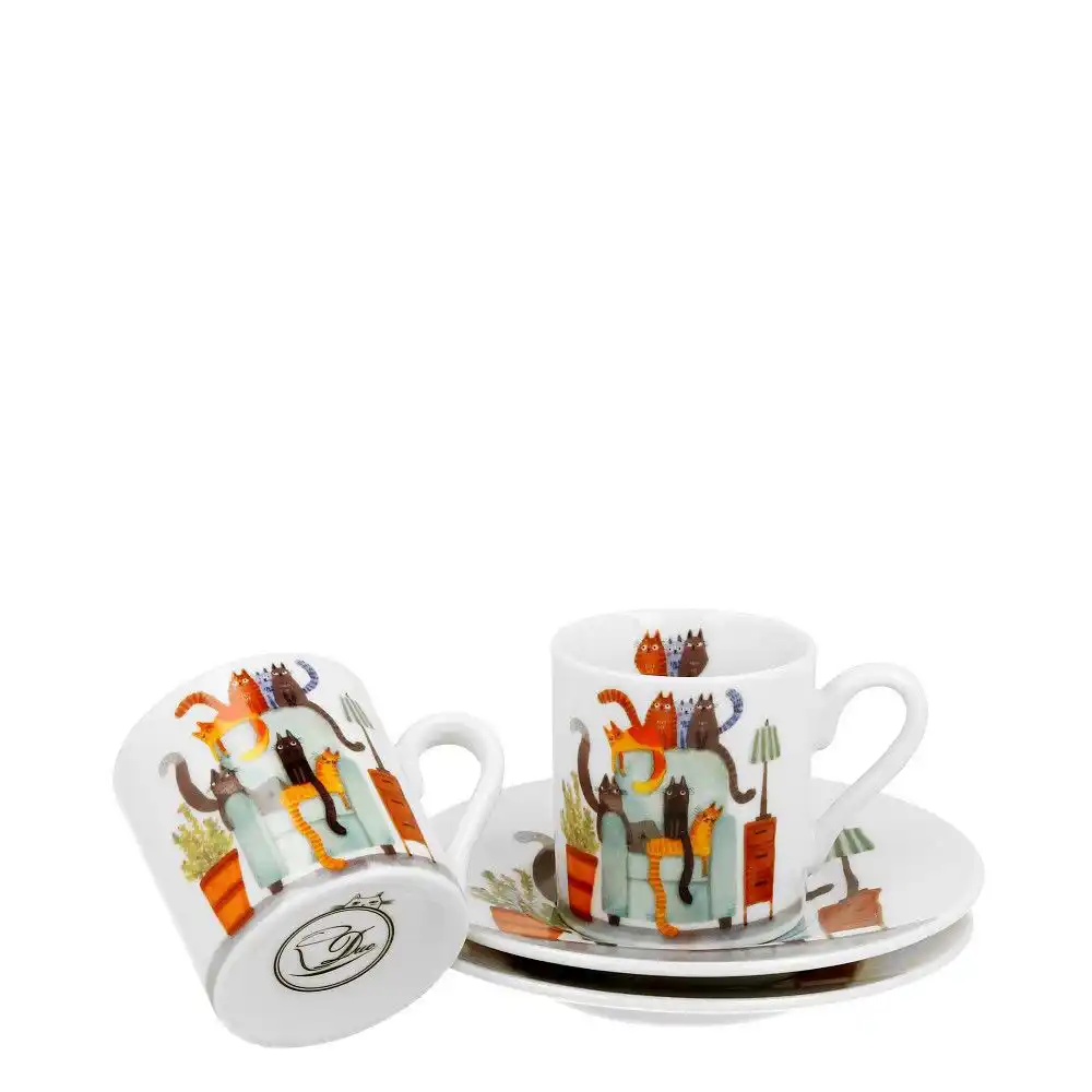 Duo Gifts Šálek s podšálkem na espresso 90 ml Kočky na křesle sada 2 ks