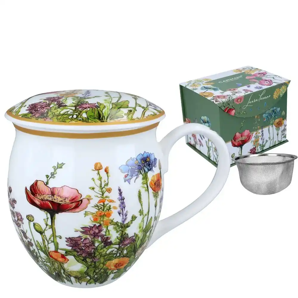 Elegantní hrnek na čaj s nerezovým sítkem a pokličkou usnadní přípravu sypaného čaje a nabídne praktický objem 450 ml. Květinový dekor Květinová symfonie z něj dělá krásný dárkový porcelánový hrnek.
