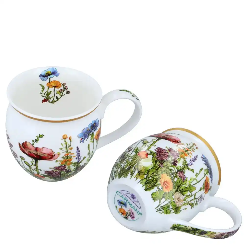 Baňatý tvar hrnku zajišťuje stabilní držení a příjemný kontakt s rukou, zatímco květinový dekor vytváří klidnou atmosféru při každém pití čaje.