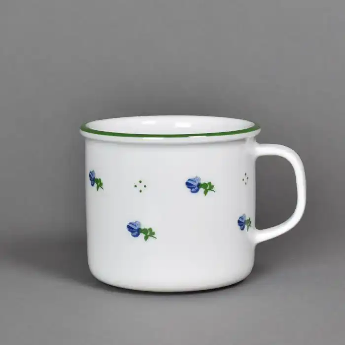 Porcelánový hrnek s dekorem modré kytičky