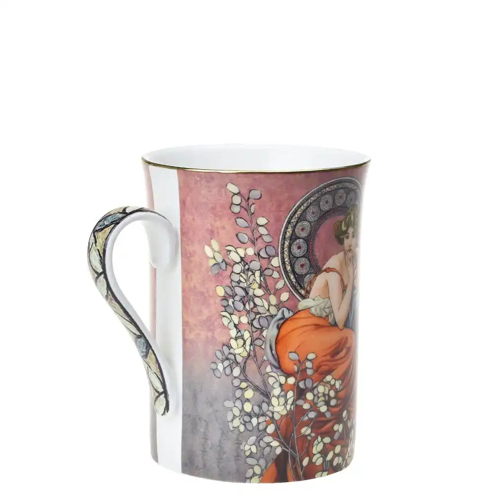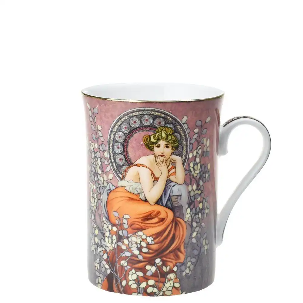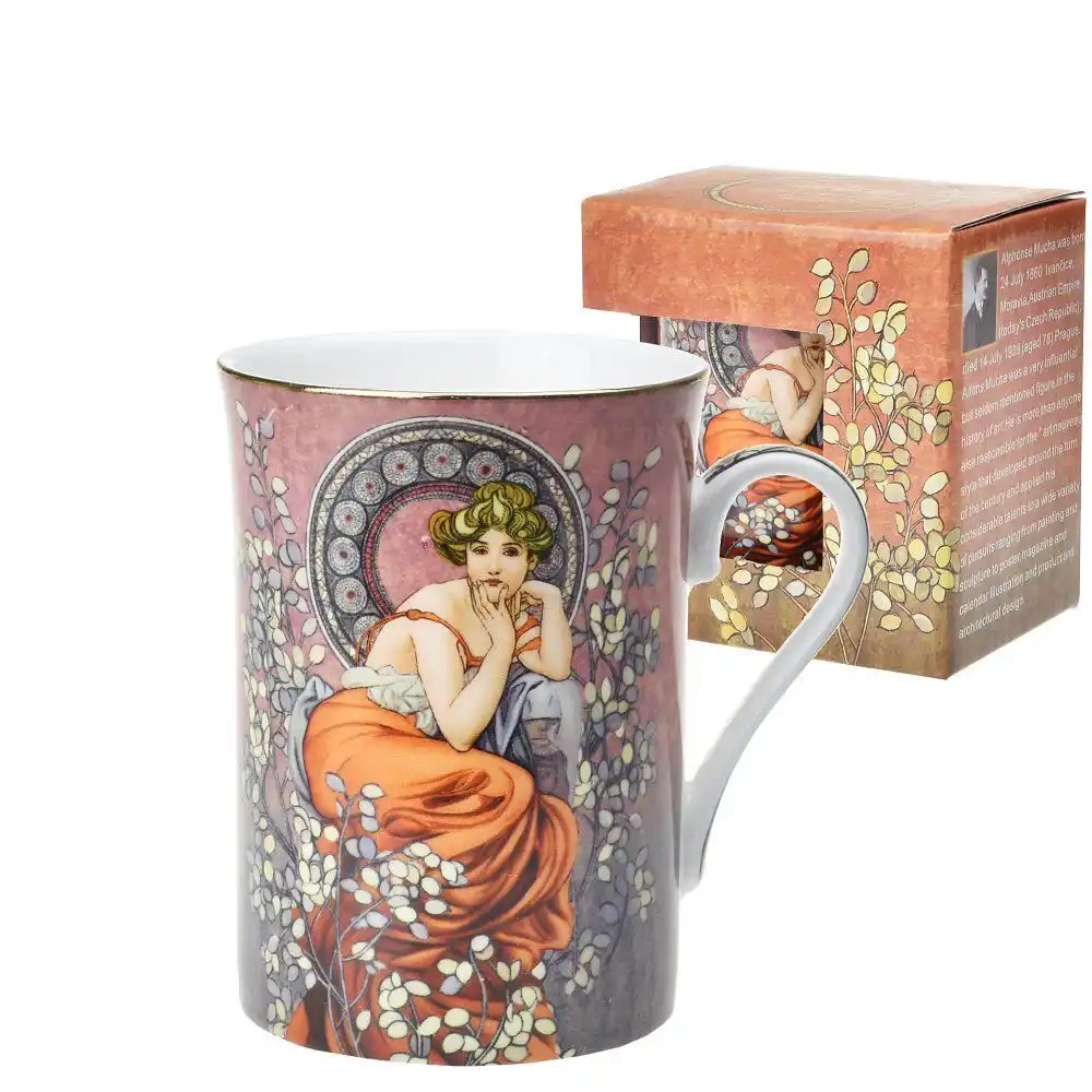 Porcelánový hrnek Mucha s objemem 280 ml zdobí motiv inspirovaný secesním malířem Alfonsem Muchou. Elegantní a praktický hrnek doplňuje dárková krabička se stejným designem. Ideální volba jako dárek pro ženy, sběratele i milovníky umění.