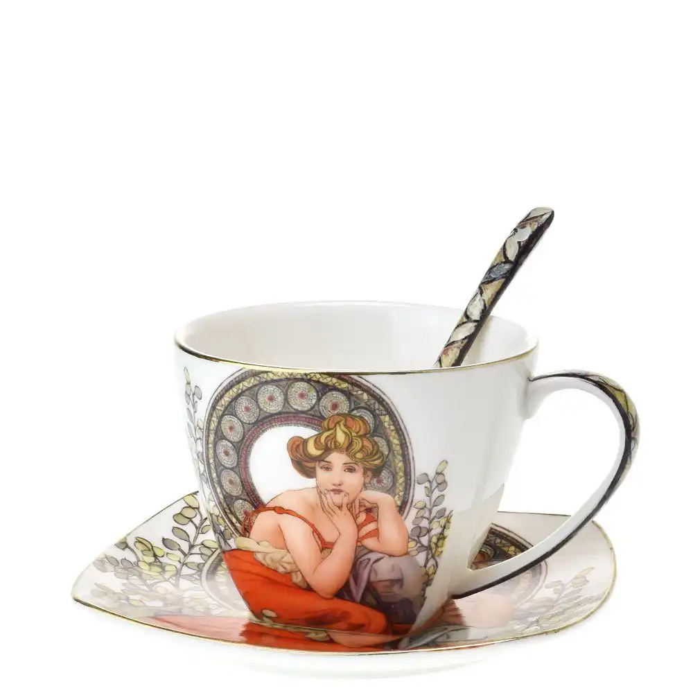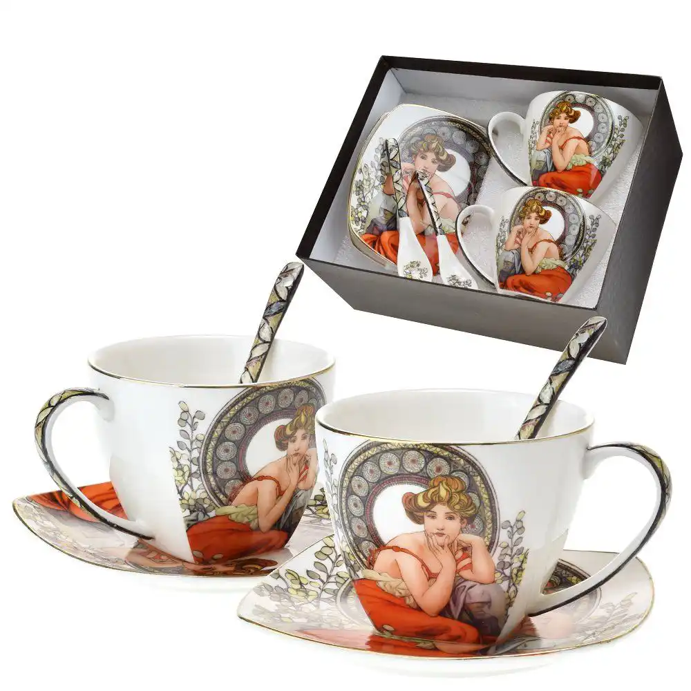 Dárková sada šálek na kávu Mucha: káva s nádechem umění a elegance