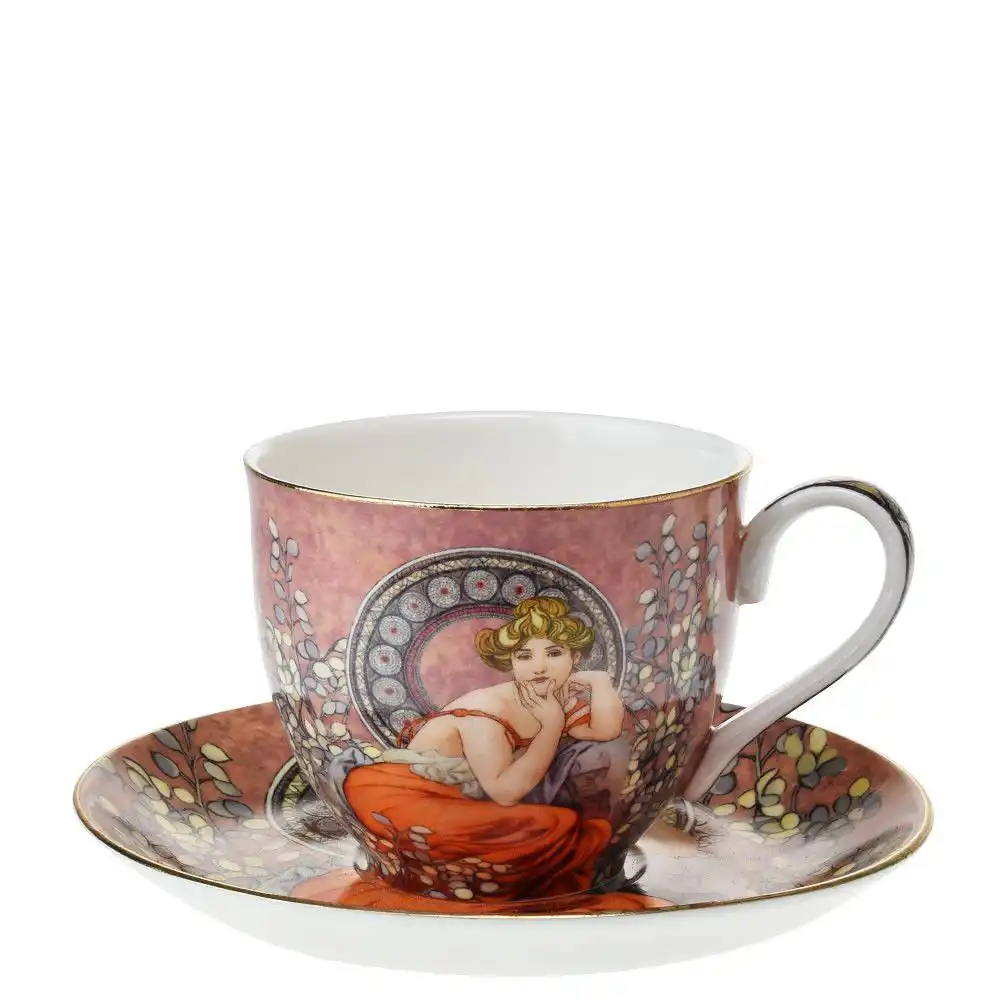 Šálek s podšálkem Mucha – Topas v dárkové krabičce: Klasika secesního umění pro každodenní potěšení