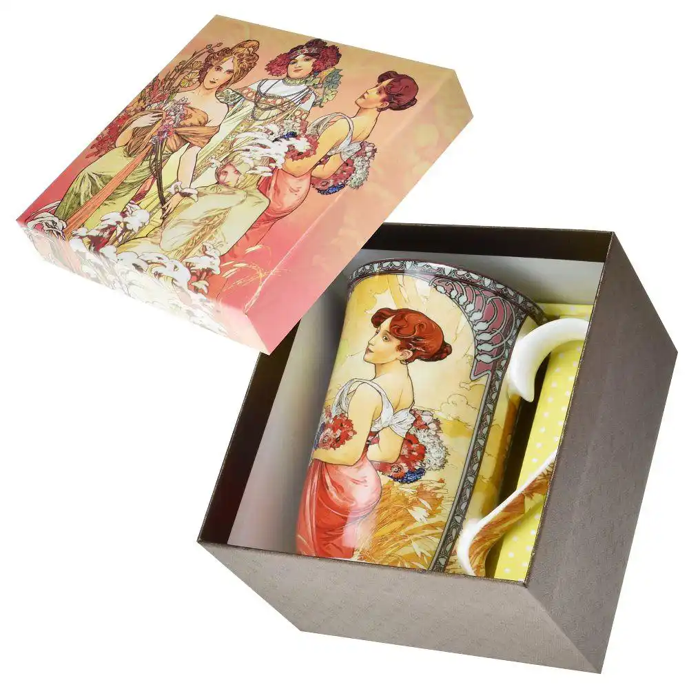 Porcelánový hrnek Mucha s dekorem Léto nabízí velký objem 400 ml, kvalitní provedení a krásný motiv Léto. Dodáváme v elegantní dárkové krabičce. Perfektní dárek i pro každodenní použití.