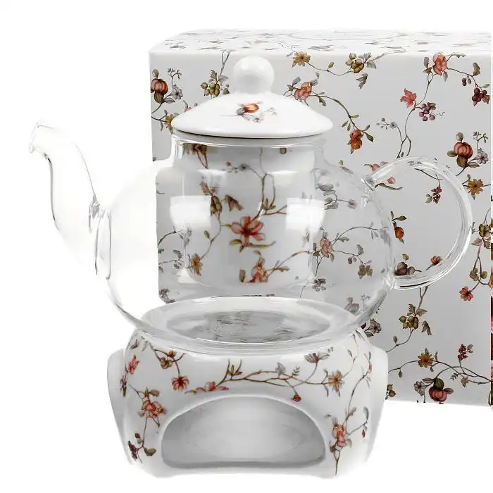 - konvice z varného skla s porcelánovým sítkem a víčkem
