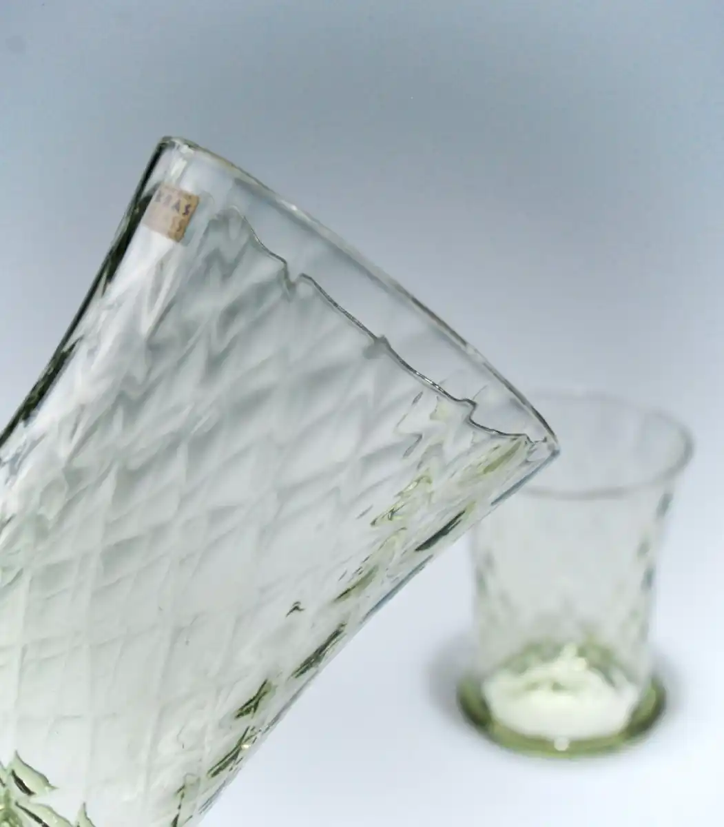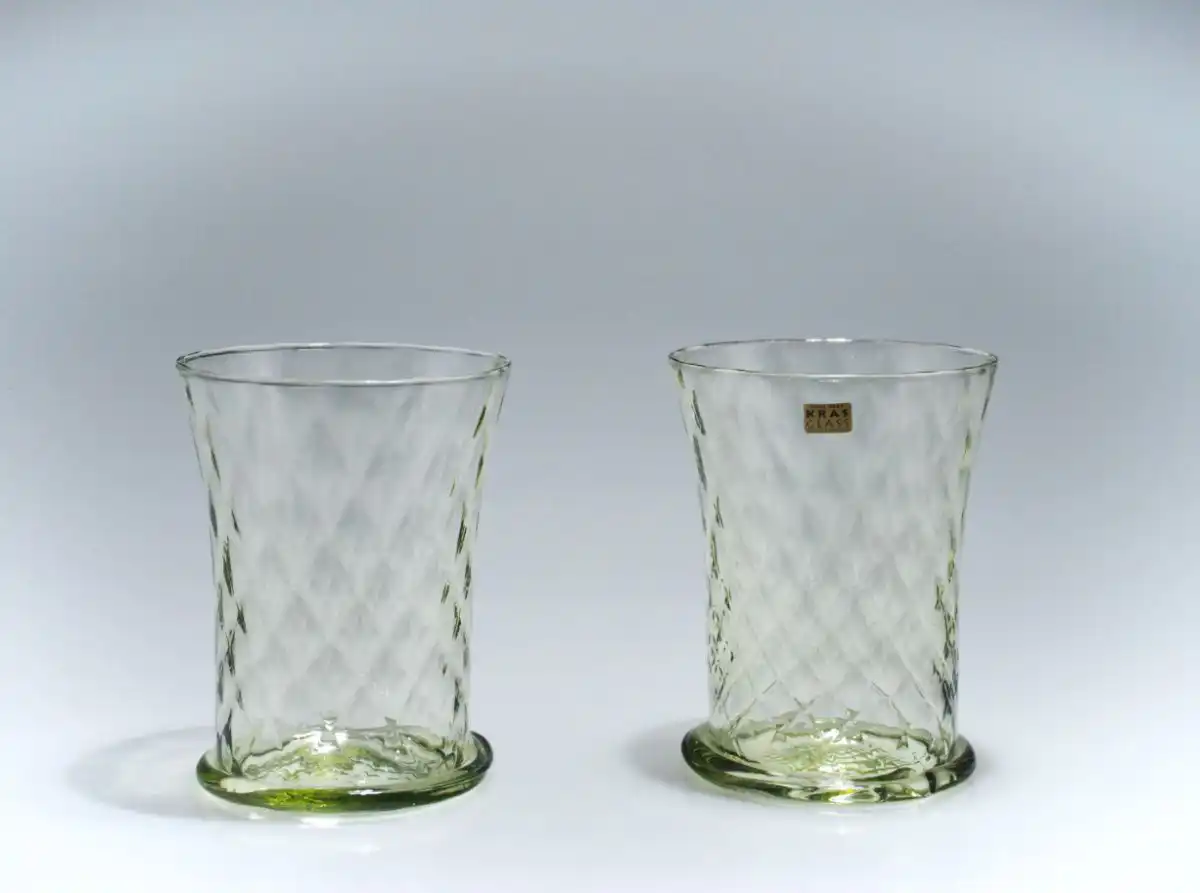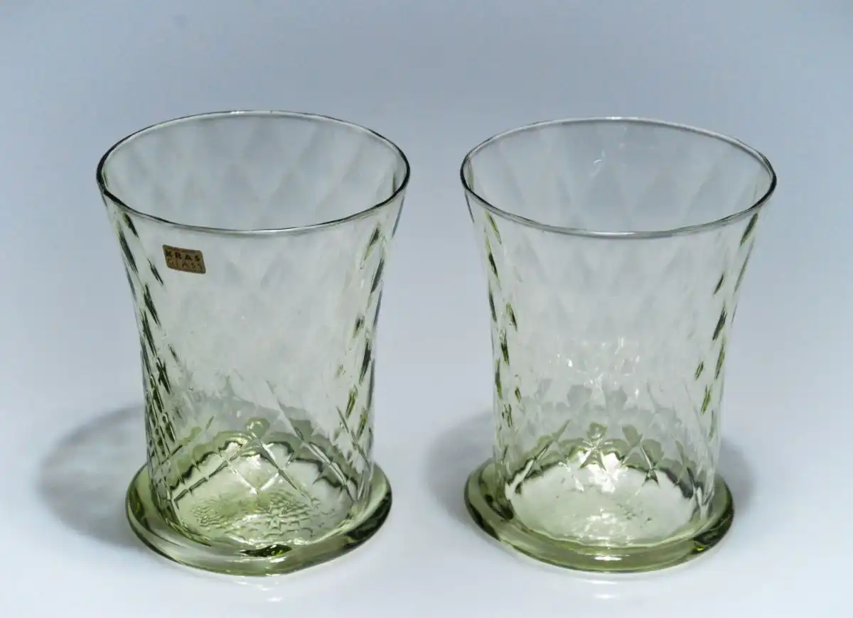Sklenice ze zeleného skla s optickým dekorem