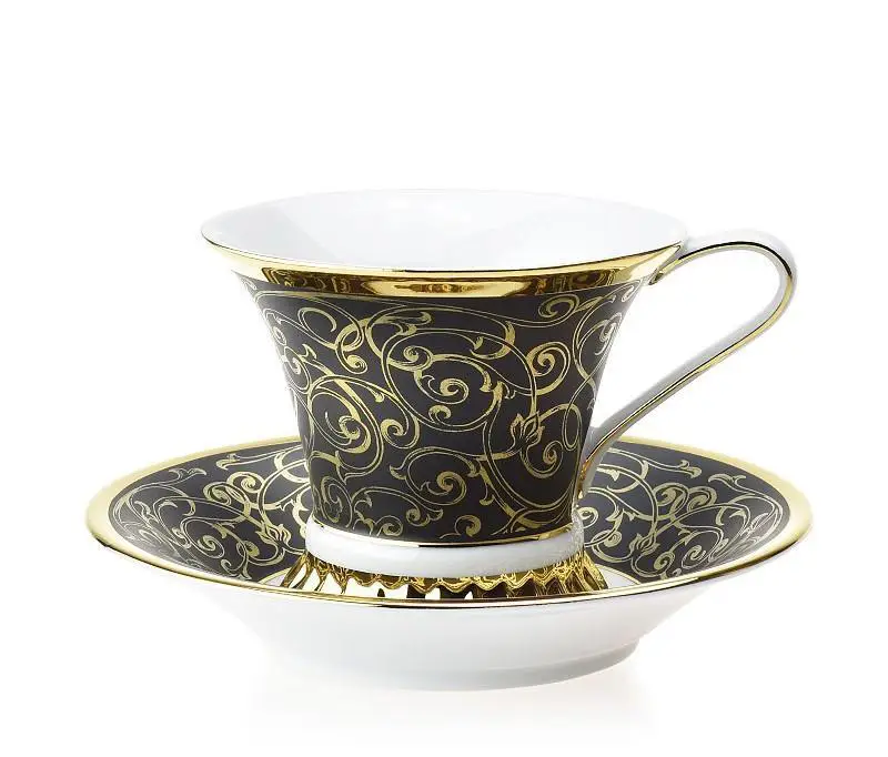 Luxusní porcelán šálek černý se zlatem – odvážná elegance pro stylové chvíle