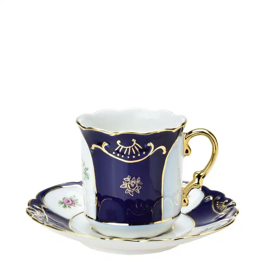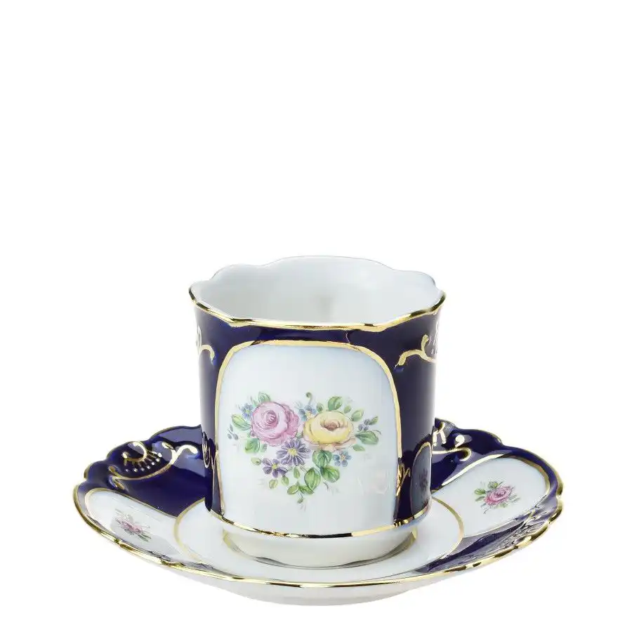 Pro chvíle, kdy chcete zpomalit a vychutnat si klid. Luxusní šálek s podšálkem z bílého porcelánu, dekorovaný kobaltem, zlatem a motivem rozkvetlé kytice, promění každodenní nápoj v slavnostní okamžik. Šálek s objemem 150 ml působí něžně i vznešeně zároveň – jako květina v porcelánovém rámečku.