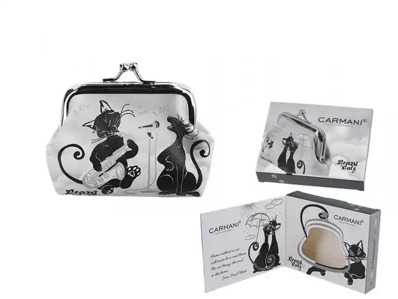 Malá peněženka s dekorem koček spojuje praktický doplněk s hravým motivem, který zaujme na první pohled. Díky kompaktním rozměrům ji snadno uložíte do kabelky, kapsy i menší tašky, přitom nabídne dostatek prostoru pro mince a drobnou hotovost.