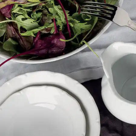 Velice oblíbený porcelánový soubor Verona se vyrábí v porcelánce G.Benedikt v Karlových Varech. Porcelánový soubor Verona bez dekorace se používá i jako základní tvar na který se dále nanášejí dekory Valbella modrá a dekor Francesca, proto každá hospodyňka může tyto dekory podle své libosti kombinovat se základním bílým dekorem a vytvořit si tak jedinečnou porcelánovou sestavu podle svých potřeb. Přestože porcelánka G.Benedikt označuje řadu Valbella modrá a Francesca svoji spodní značkou, Verona bez dekorace označena není. Porcelán Verona bílá se hodí pro užívání v mikrovlnné troubě i myčce nádobí. Ať máte rádi jakýkoliv styl, bílý porcelánový soubor Verona zapadne do Vaší domácnosti s grácií. Při setkání s krásou porcelánu se stává každá chvíle jedinečnou. Kouzlo porcelánu nás provází v našem každodenním životě.