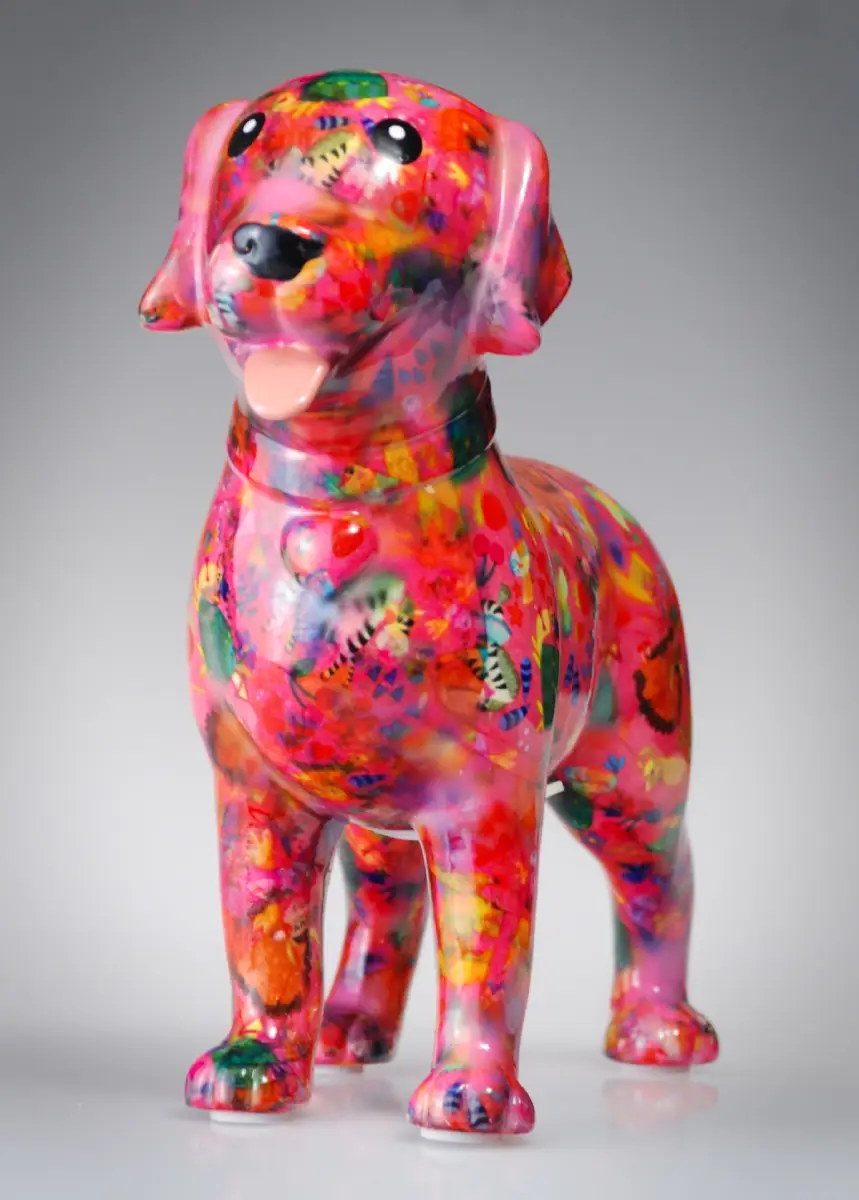 Pokladnička labrador spojuje hravý design s praktickým využitím. Učí děti finanční odpovědnosti, motivuje k pravidelnému spoření a zároveň působí jako výrazná dekorace. Robustní keramika a růžový dekor činí pokladničku dlouhodobě využitelnou a atraktivní.