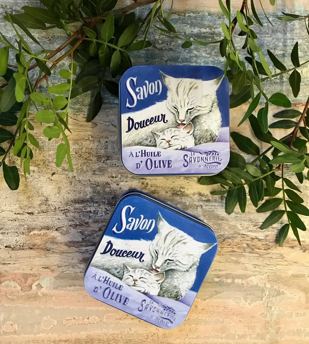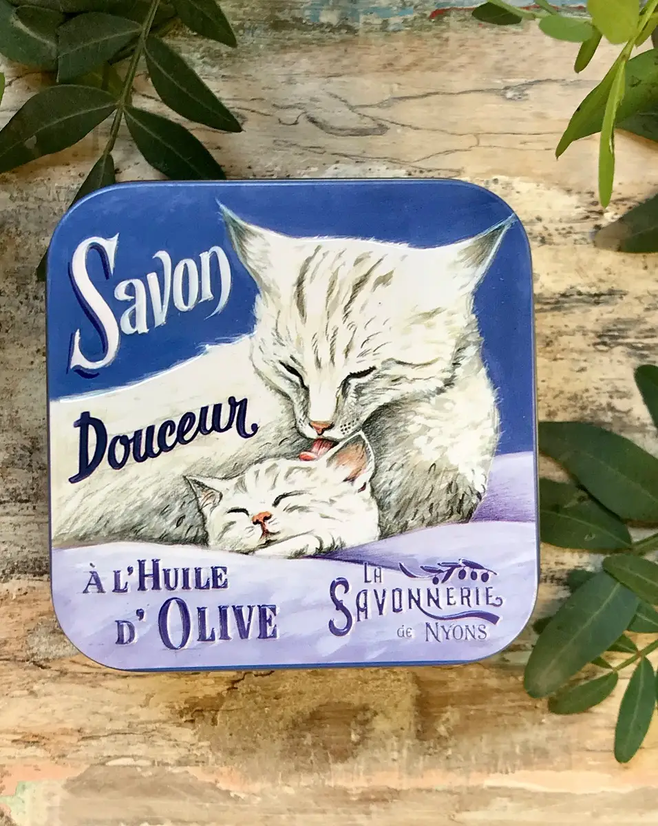 Mýdlo je uloženo v elegantní plechové krabičce s obrázkem bílé kočky, která chrání obsah a zároveň působí jako originální designový prvek. Díky krabičce se mýdlo snadno přenáší a stává se vhodným dárkem pro vaše blízké.