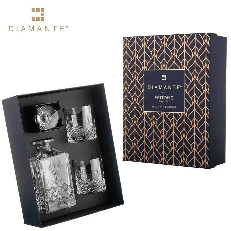 Souprava na whisky je opatřena elegantní dárkovou krabicí, která zajišťuje bezpečné uložení a zároveň reprezentativní vzhled při předání. Sada se hodí jako dárek k narozeninám, svátku, výročí nebo k jiným slavnostním příležitostem.