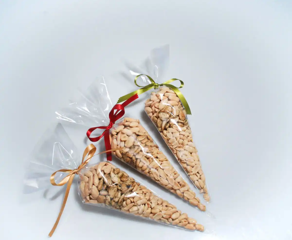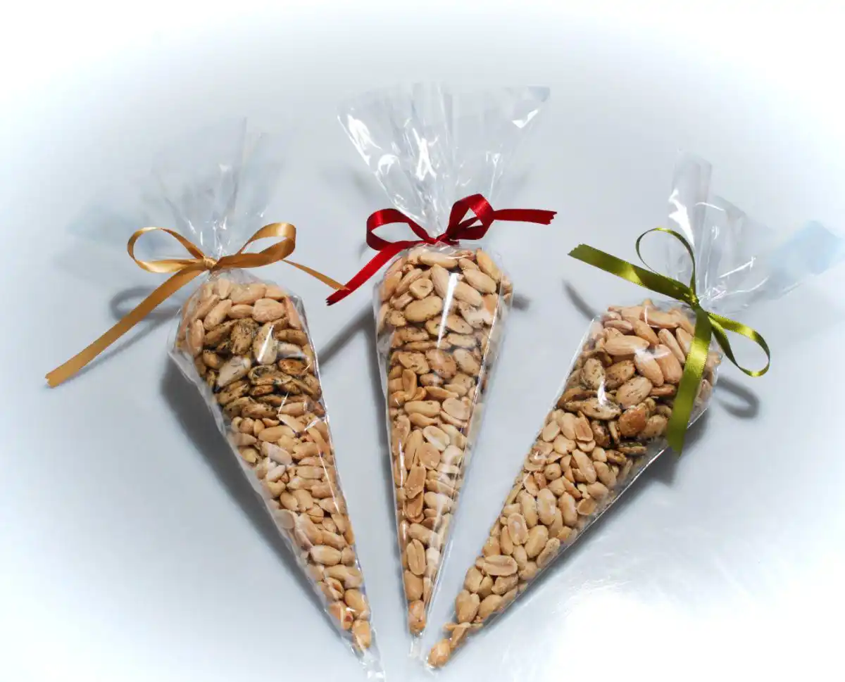 Kornout o hmotnosti 280 g je nejen praktický, ale také vizuálně atraktivní. Transparentní obal umožňuje vidět barevnou a chutnou směs ořechů, což působí lákavě při prezentaci na stole. Kornout je kompaktní, snadno přenosný a vhodný k okamžitému podávání nebo darování.