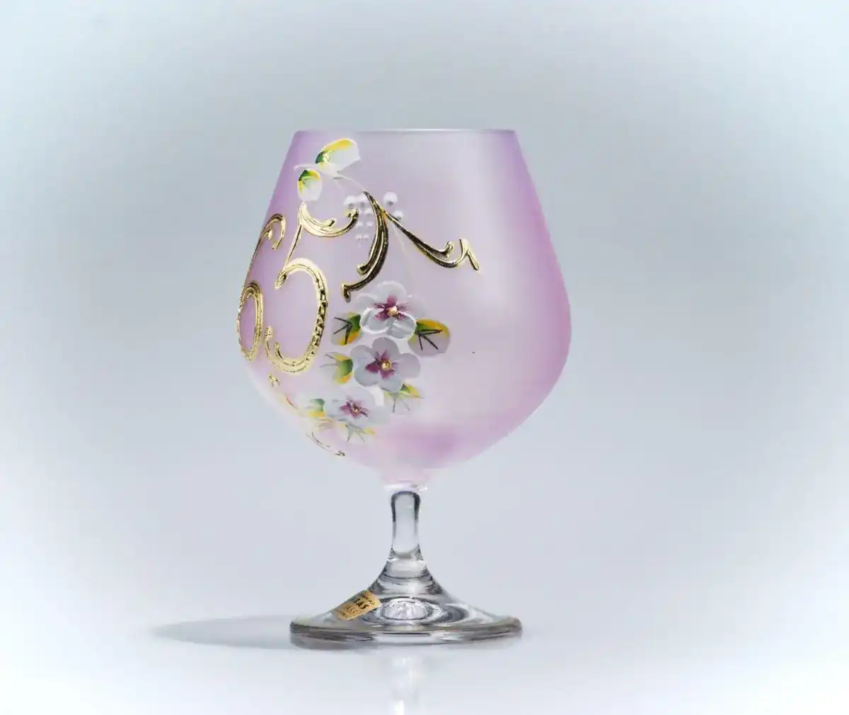 Tato výroční sklenice k 65. narozeninám je vyrobena ručně ve sklářském městě Nový Bor, známém svou dlouhou tradicí ve zpracování skla. Jemně růžové sklo působí něžně a romanticky, čímž dává najevo úctu k oslavenci i smysl pro detail. Na přední straně sklenice je ručně malované číslo 65, zdobené zlatou barvou, které z ní činí skutečně slavnostní artefakt.