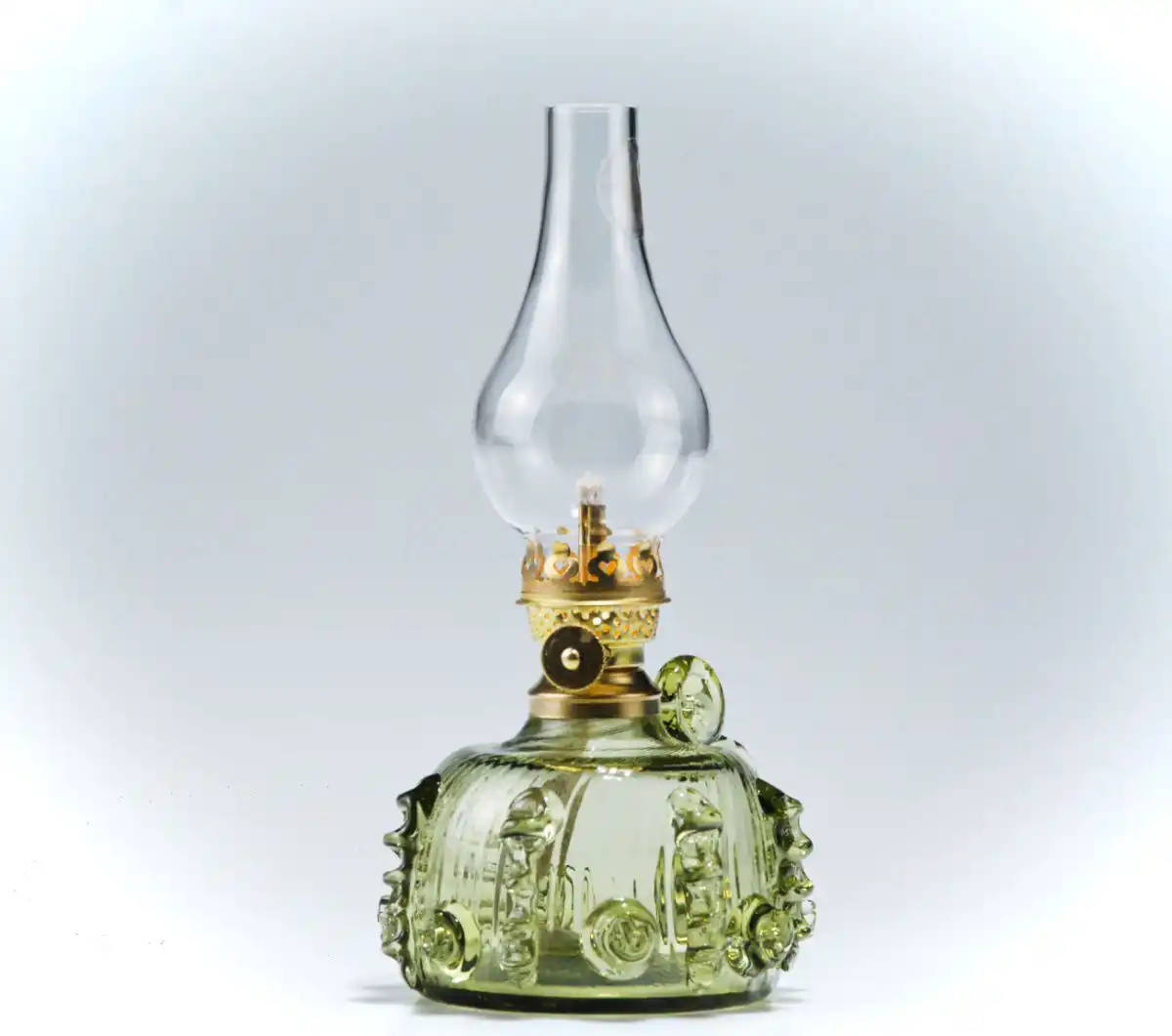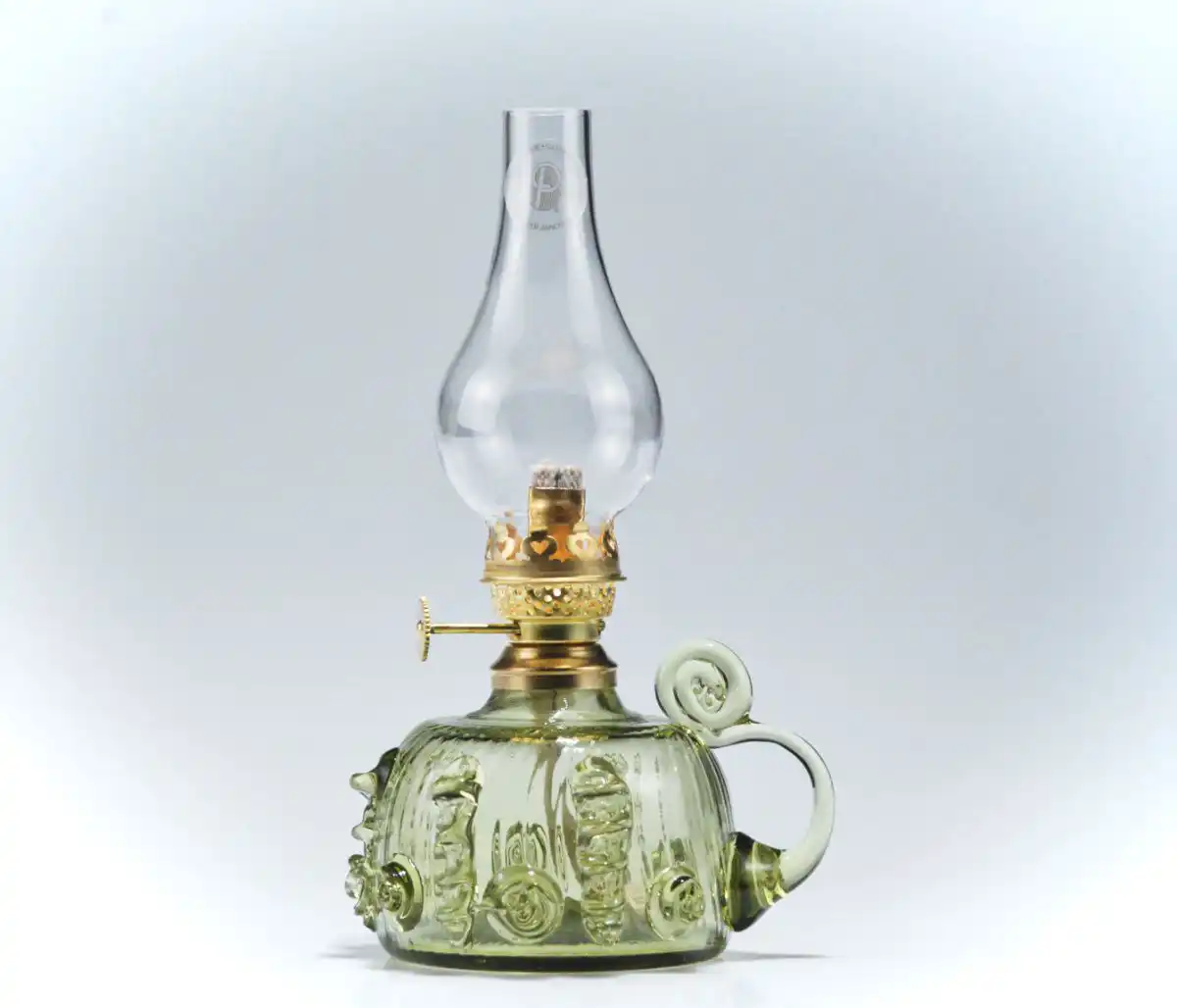 Petrolejová lampa z lesního skla – ruční umělecká výroba