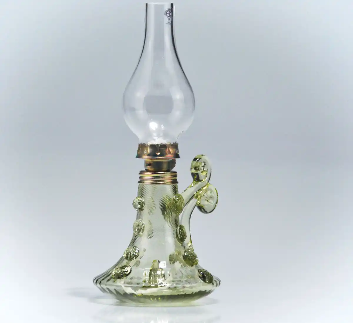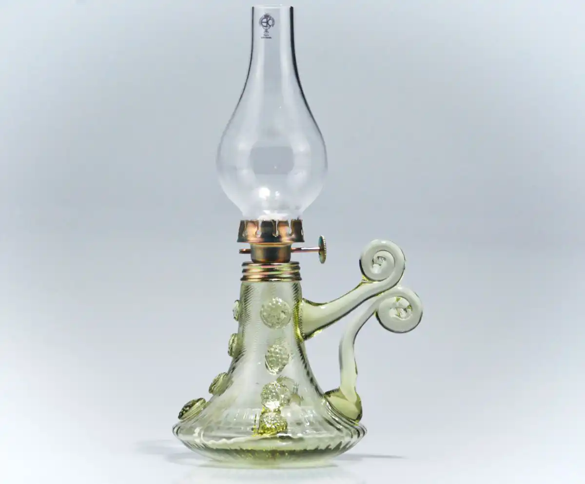 Každá petrolejová lampa vzniká v rukou zkušených sklářů, kteří ctí tradici i krásu materiálu. Tělo lampy tvoří pevné a hutné sklo, zdobené jemnými detaily, které zvýrazňují jeho eleganci. Cylindr je štíhlý, opticky prodlužuje celou lampu a zároveň zajišťuje správný tah vzduchu pro stabilní plamen. Díky ruční práci je každý kus originální – žádná lampa není úplně stejná. Vlastnictví takového předmětu přináší nejen radost, ale i pocit jedinečnosti.